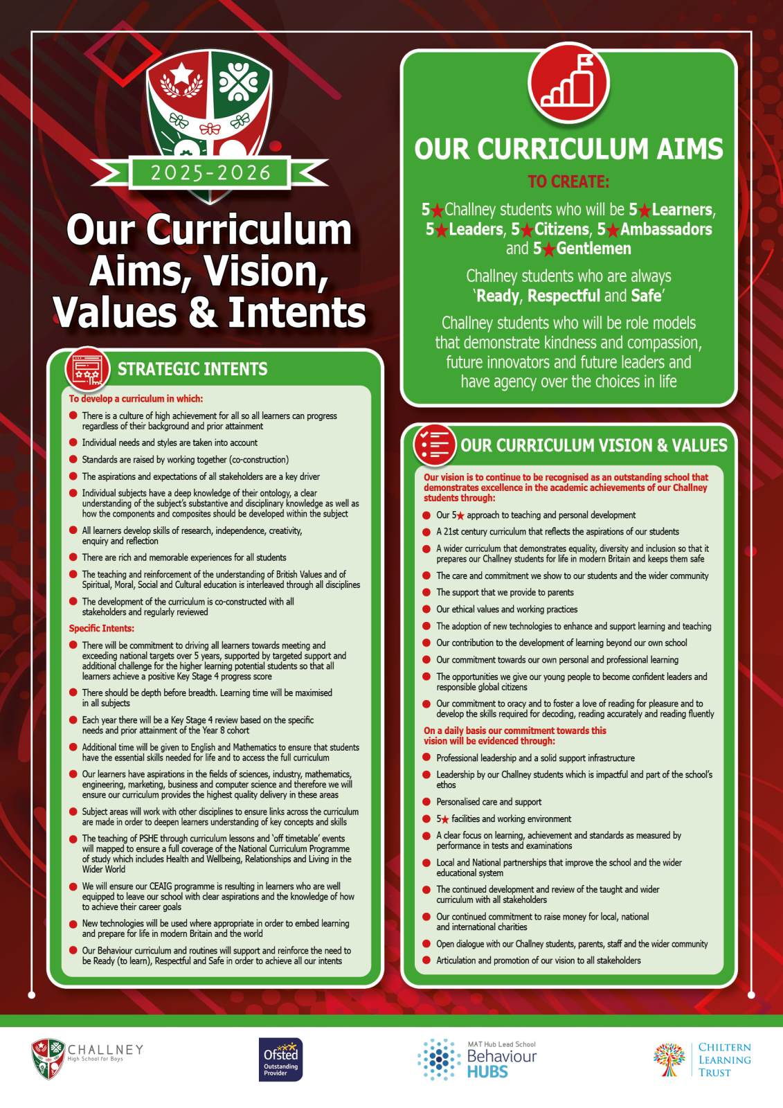 Please contact mparmar@challneyboys.co.uk if you require any further information regarding the schools curriculum offer.